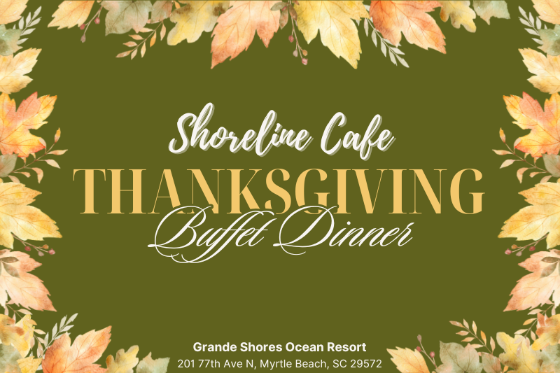 Celebrate Thanksgiving at Grande Shores Ocean Resort in Myrtle Beach and enjoy a festive meal at our onsite restaurant, Shoreline Cafe, or take the flavors of Thanksgiving home with our new Family Takeout - Heat & Serve option!